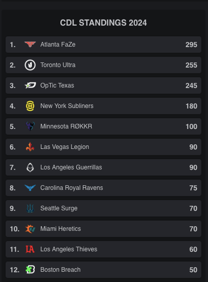 Un segundo evento que no dejó ninguna sorpresa en su primer día: pues vencieron todos los cuadros favoritos; eso sí, con la excepción, como decíamos antes, de la sorpresa de que FaZe tuvo que sufrir más de lo esperado en su primer match ante Thieves. La repartición de puntos final se ha dado de la siguiente forma: Atlanta campeón, 100 puntos; OpTic subcampeón, 75 puntos; New York, terceros, 60 puntos; Toronto, cuartos, 45 puntos; Los Angeles Guerrillas, empate como quintos junto con Carolina Royal Ravens; 30 puntos ambos, y finalmente Minnesota y Las Vegas Legion se llevan 15 puntos. Esto deja la clasificación general con los 4 top teams arriba (FaZe, Ultra, OpTic y New York, en ese orden), los cuales son aspirantes a ganar todo lo que resta, y con una parte baja donde la lucha se aprieta y los dos grandes combinados beneficiados han sido Carolina y Legion, ya que entran en el TOP 8 de cara al Stage 3.