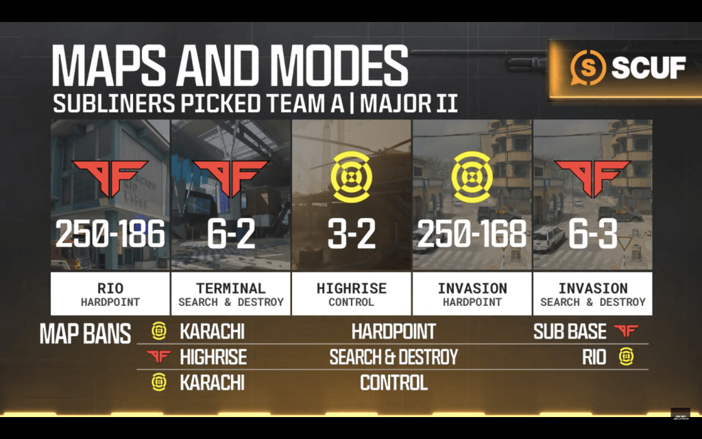 De este modo, cayeron los campeones del Major 1, habiendo peleado, eso sí, hasta el final. Quedó patente así la superioridad de los verdes en un torneo sensacional en el que solo FaZe podía frenarlos. Y en efecto, su rival en la Final de Ganadores iba a pasarlos por delante: pues FaZe comenzó la serie fuerte haciéndose con el 1er Hardpoint en Invasion (250-237). Tan ajustado como el siguiente mapa; donde OpTic vio luz al ganar la última ronda del B&D en Terminal (6-5). Los problemas para el cuadro dirigido por Karma empezaron en el Control; los ‘Tiny Terrors’ estaban carburando y sacaron 30 bajas cada uno, para cerrar el mapa con 3-1. El cuarto escenario fue otro muy igualado HP, que se saldó con el mismo marcador que el primero, y con unos OpTic tocados donde solo Kenny quedó positivo, con 27/22.